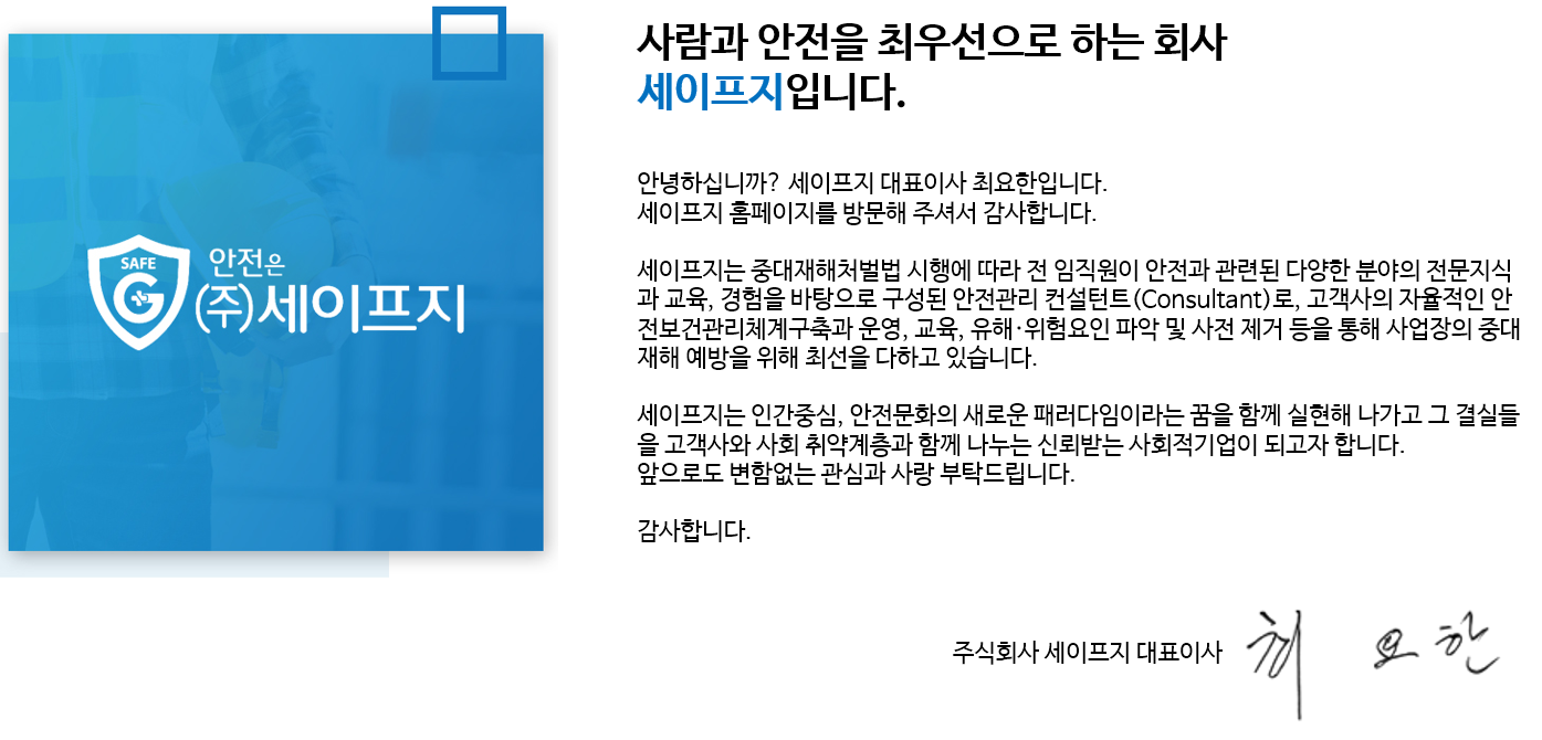 안녕하세요. (주)세이프지에듀에 오신 것을 환영합니다.